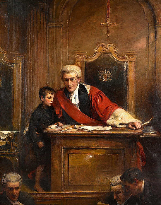 The judge and the innocent child, witness to a crime; Le juge et l’enfant innocent démoin d’un crime — George William Joy