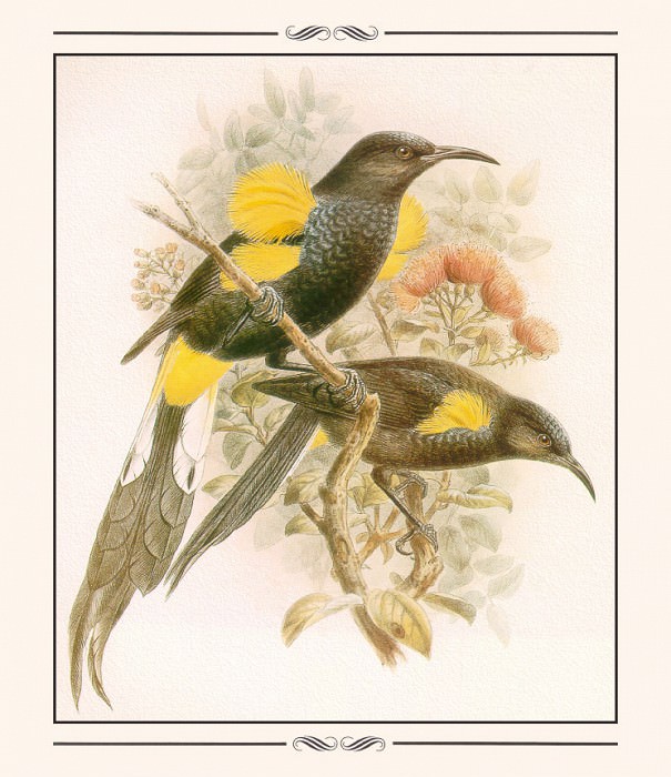 Beyond the straightforward depiction of these creatures, the drawing carries subtexts related to scientific exploration and documentation. The precision in detail suggests an intention to record and classify, characteristic of natural history illustrations intended for scholarly purposes. The careful arrangement of the birds – one facing forward, one displayed from behind – implies a desire to present them comprehensively, allowing for detailed study of their morphology. There is a sense of quiet observation and reverence for the subject matter; the artist’s focus appears entirely on capturing the essence of these birds with fidelity and clarity.