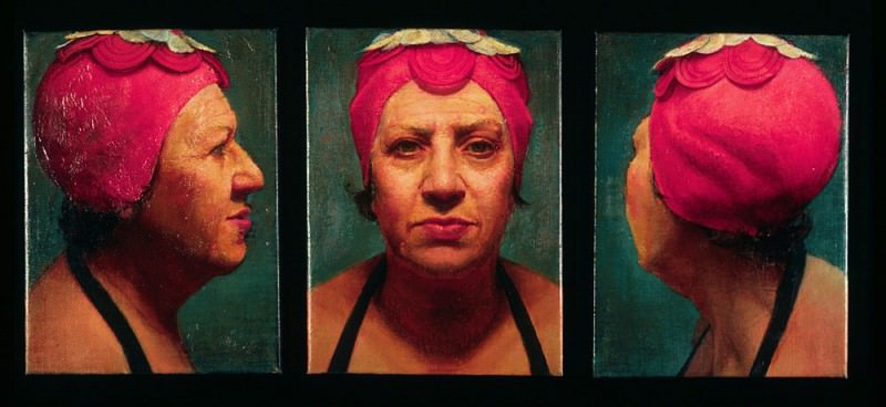Perhaps it’s a painting of a woman in a black dress holding a flower in one hand and a candle in the other.