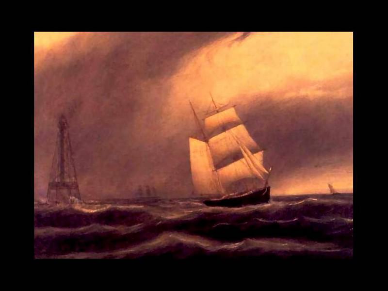 Perhaps it’s a painting of a boat in a body of water with other boats in the water and one boat.