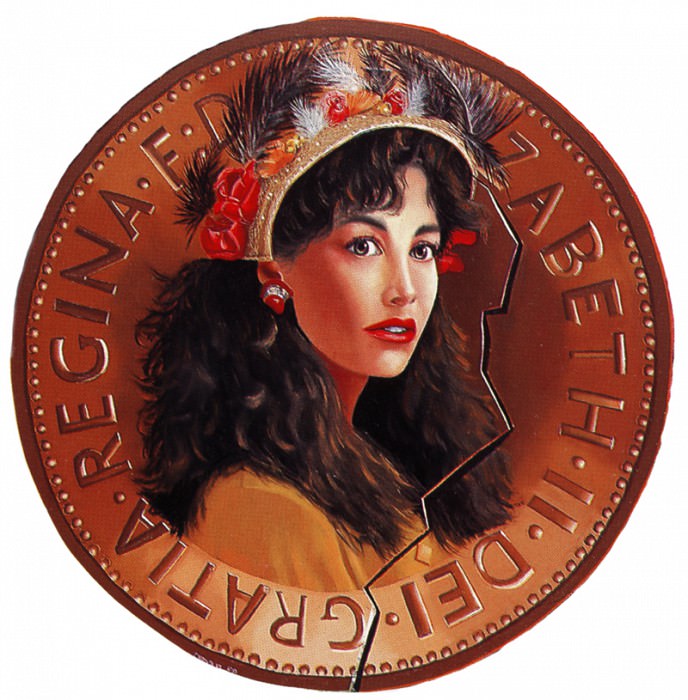 Perhaps it’s a painting of a man in a tuxedo with a skull on top of his head and a red clock in the middle of his forehead.